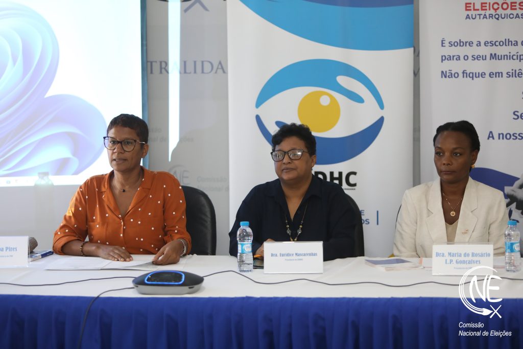 A sessão de abertura contou com intervenções da Presidente da CNE, Dra. Maria do Rosário, e da Presidente da CNDHC, Dra. Eurídice Mascarenhas.