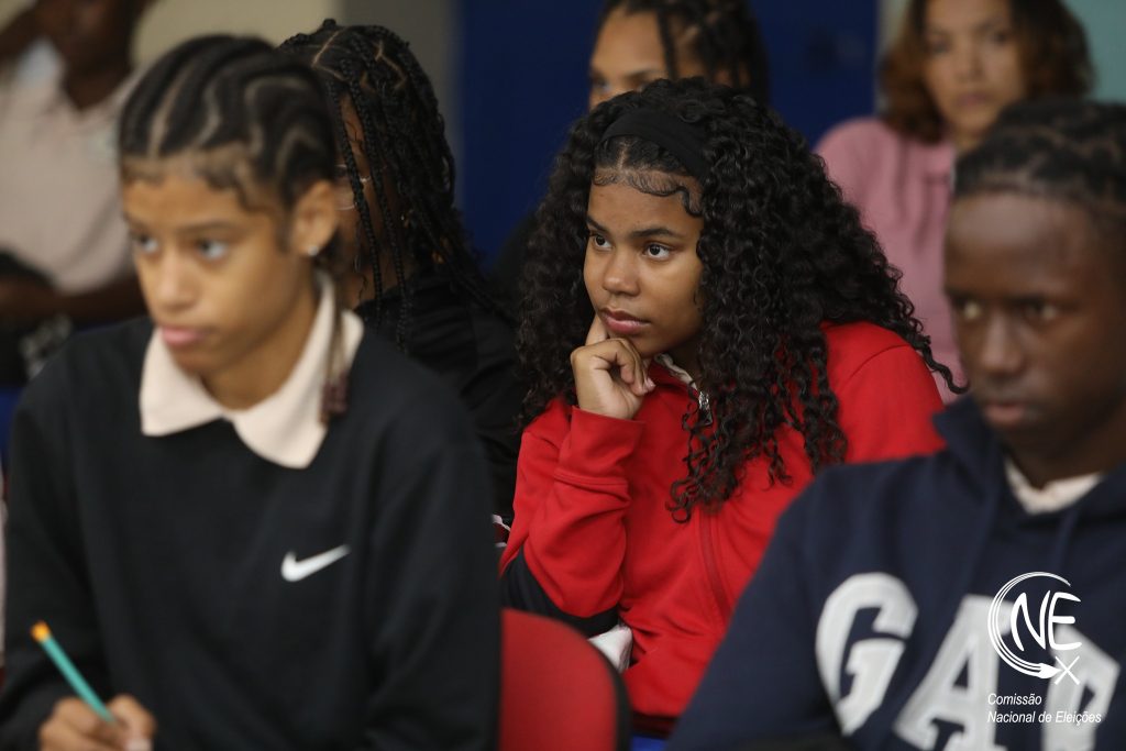 A sessão foi marcada por uma interação significativa entre os alunos, que participaram ativamente com perguntas, opiniões e partilhas de experiências. Ao final, o professor de História Bruno Varela, responsável pelo acompanhamento dos alunos, recebeu das mãos da Presidente da CNE diversos materiais, como o Código Eleitoral, guias para o cidadão eleitor e panfletos informativos. Esses recursos serão disponibilizados na biblioteca da escola para consulta e estudo.